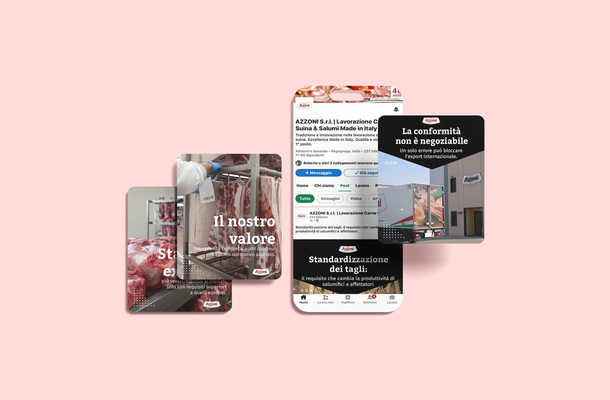 Ci occupiamo della gestione social di Azzoni s.r.l. con un lavoro costante di contenuti e narrazione, pensato per parlare in modo chiaro e credibile a buyer e professionisti del settore.