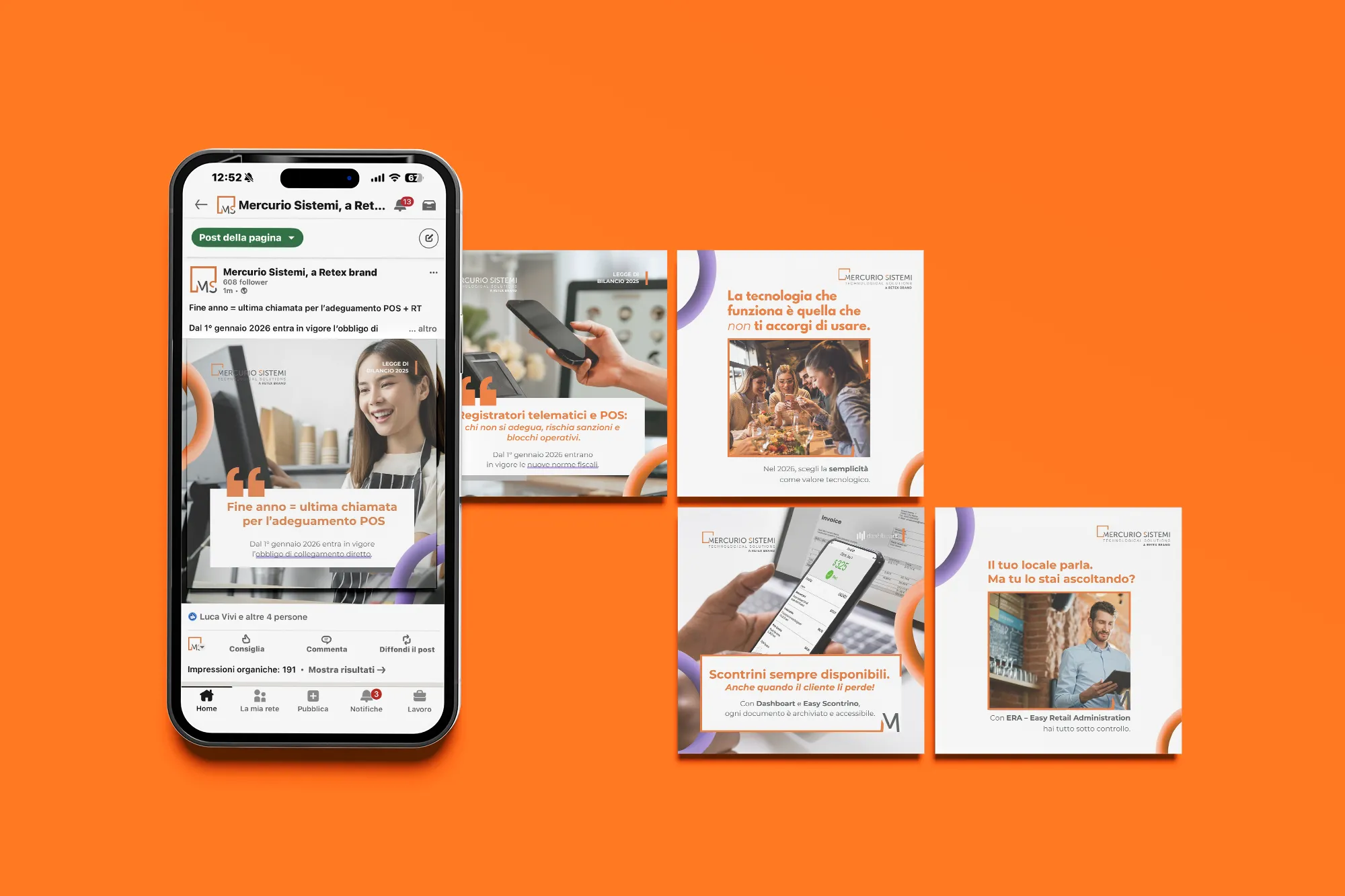 Con Mercurio, la sfida era chiara: trasformare un know-how tecnologico in un racconto comprensibile, affidabile, distintivo. Un’azienda che parla di dati, software e soluzioni, ma lo fa pensando sempre alle persone che useranno quegli strumenti sul campo: ristoratori, esercenti, imprenditori.