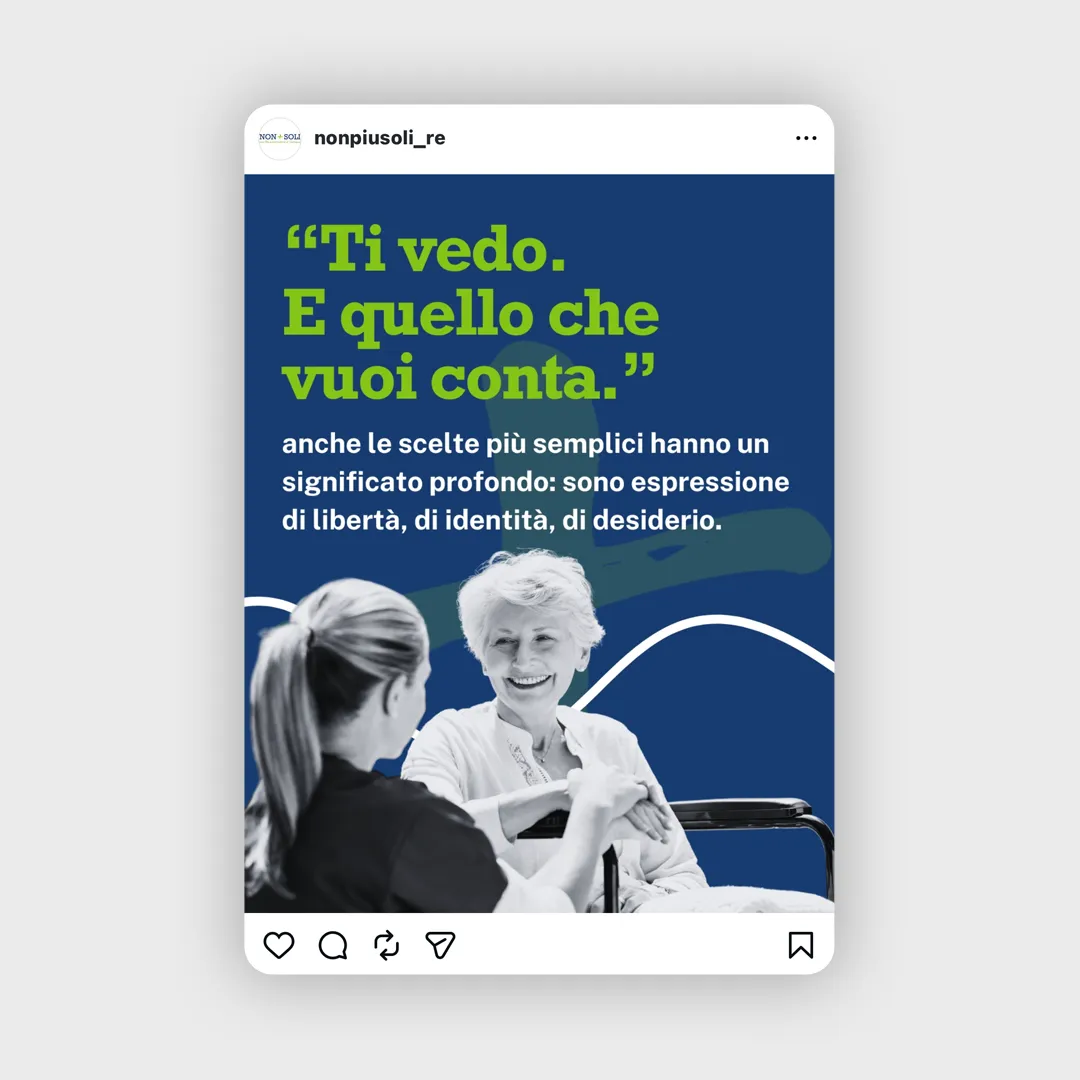 La comunicazione social è stata sviluppata per rendere accessibili contenuti delicati e talvolta complessi, mantenendo un equilibrio tra precisione, empatia e immediatezza. Abbiamo costruito contenuti capaci di spiegare, orientare e raccontare, senza perdere il tono umano che rende Non+Soli riconoscibile.