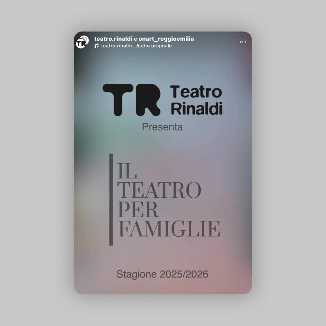 In questo percorso abbiamo anche ridisegnato il logo del Teatro Rinaldi con leggerezza e rispetto, per restituirgli forza e contemporaneità senza tradirne la storia.