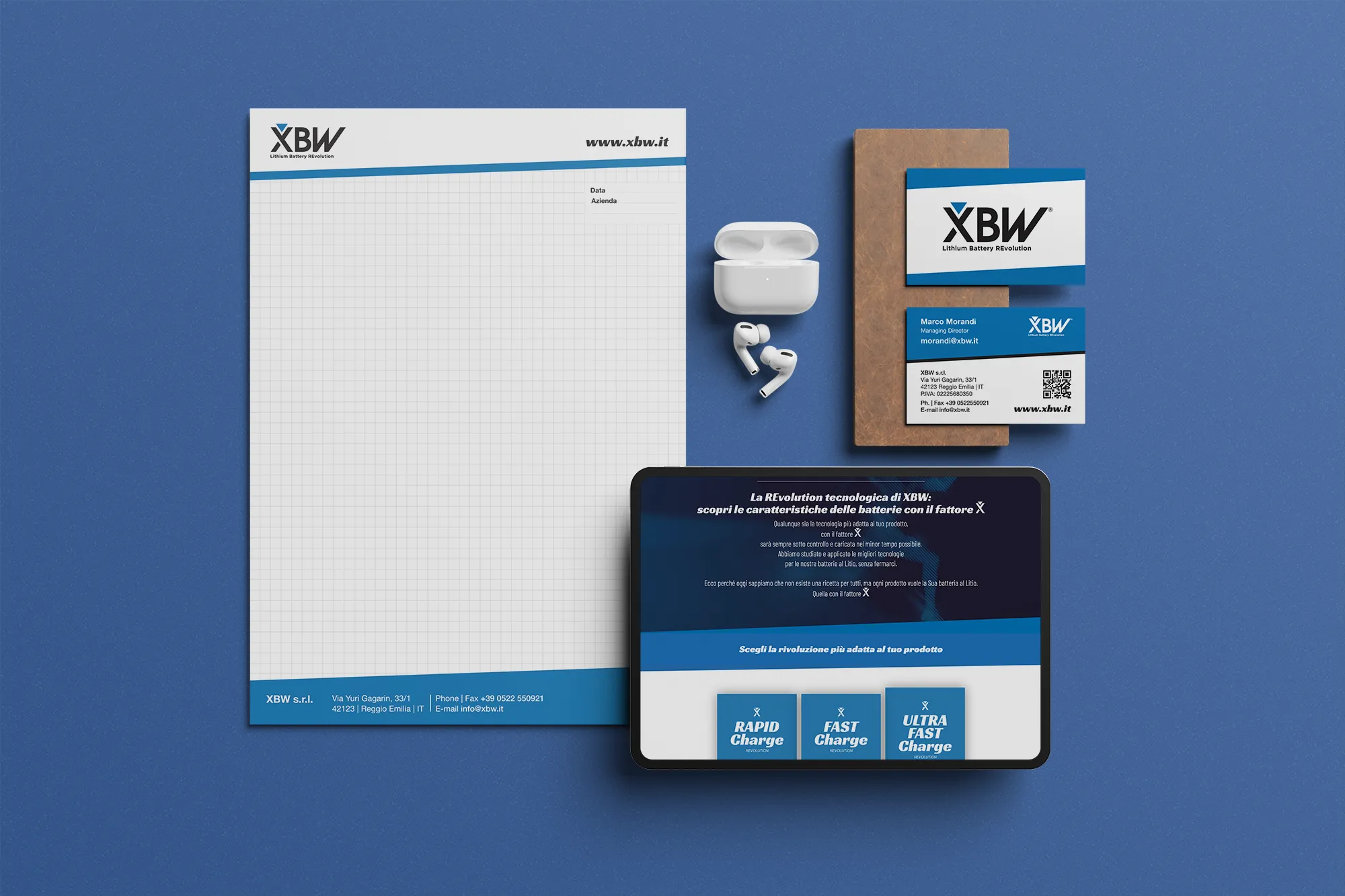 Sull’immagine coordinata abbiamo lavorato per rendere XBW immediatamente riconoscibile, mantenendo coerenza tra digitale e presenza fisica.