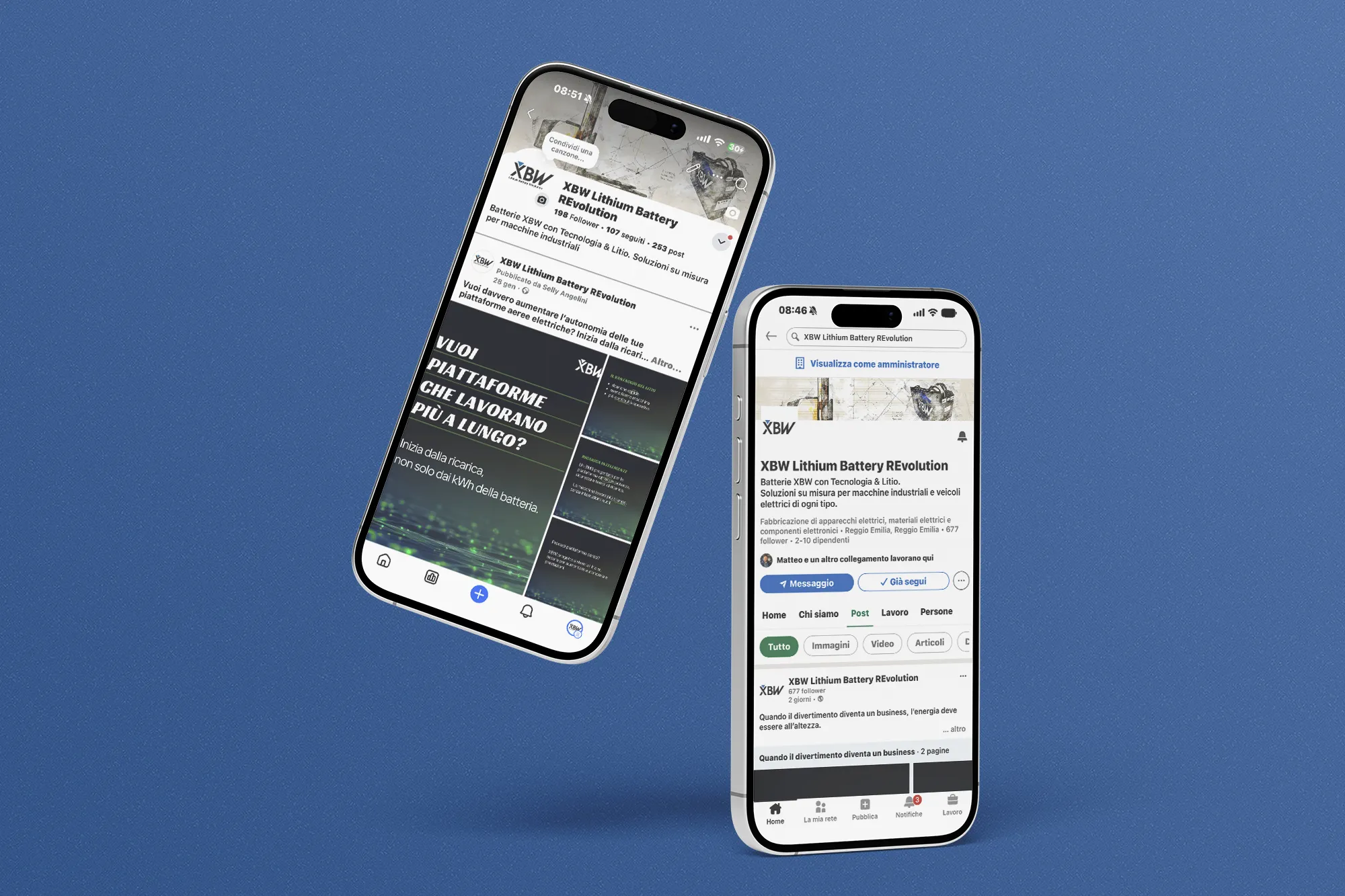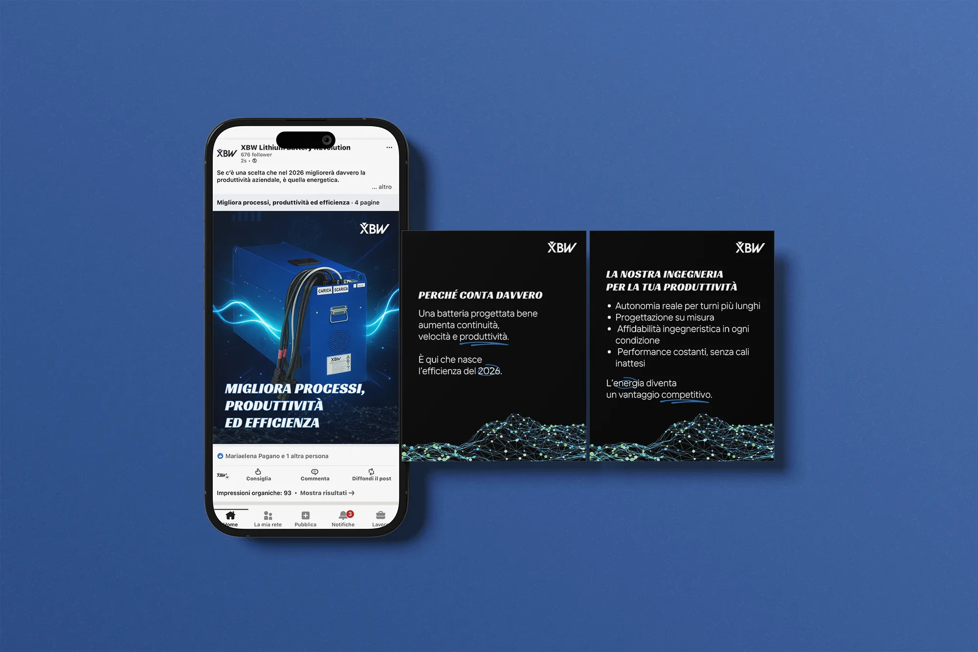 Abbiamo trasformato LinkedIn e Facebook in due spazi narrativi dove XBW può raccontarsi con continuità, portando in primo piano il valore concreto delle sue batterie al litio e delle soluzioni su misura.